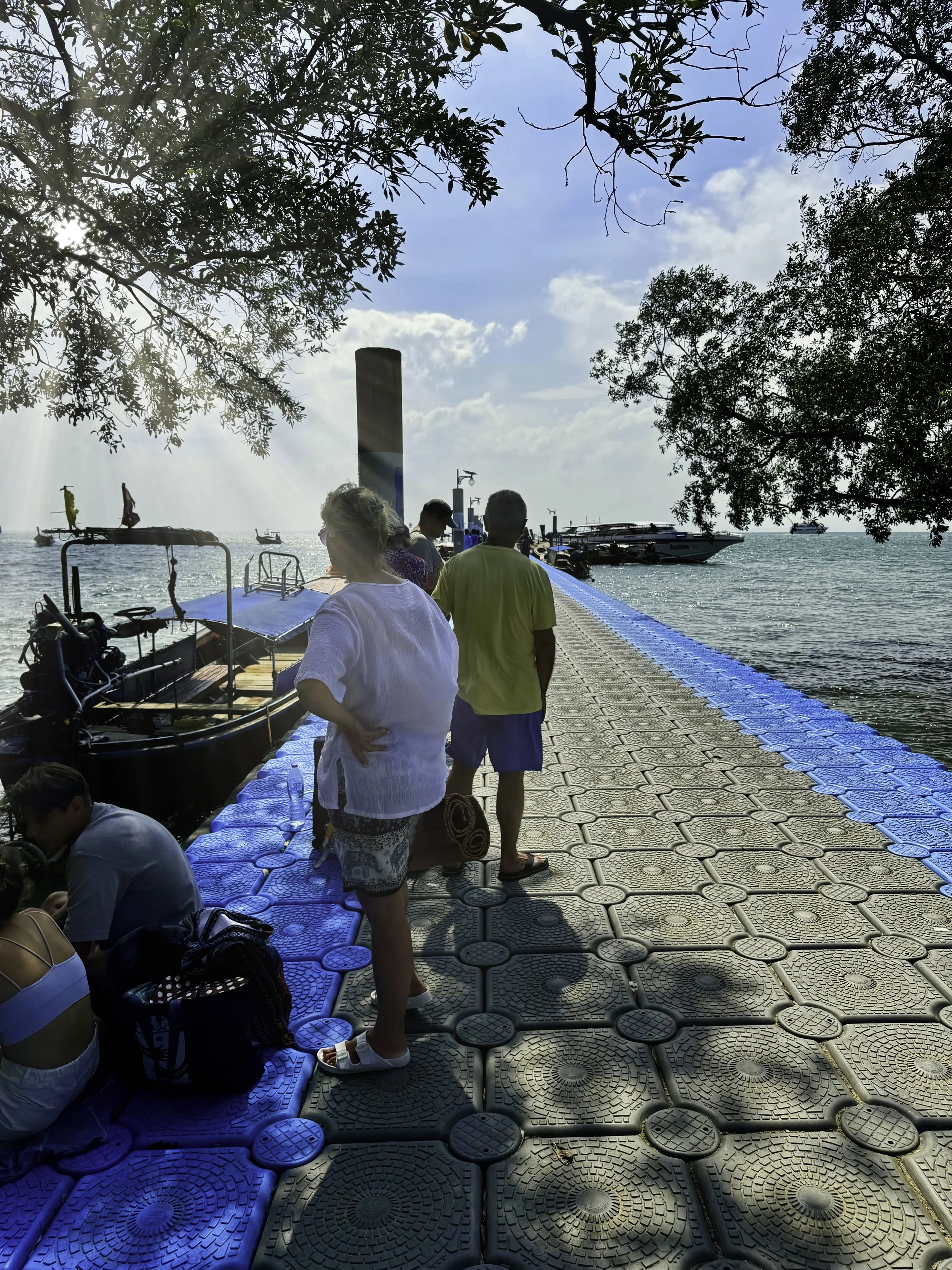 Um Nach Koh Lanta zu kommen, mussten wir zunächst nach Railay East rüber und dann mit einer Fähre nach Koh Lanta. Mit der Fähre war es deutlich entspannter, als mit den Speedbooten, vor allem wegen dem Motorenlärm. Da Railay East Ebbe hatte, mussten wir zuerst mit einigen Longtailbooten zur Fähre hinausfahren und danach dockte die Fähre an einer anderen Fähre an, um noch weitere Passagiere aufzunehmen. Manöver war speziell, aber absolut professionell gemacht. Bei uns würde dies wohl aus sicherheitsgründen nie gemacht werden…
