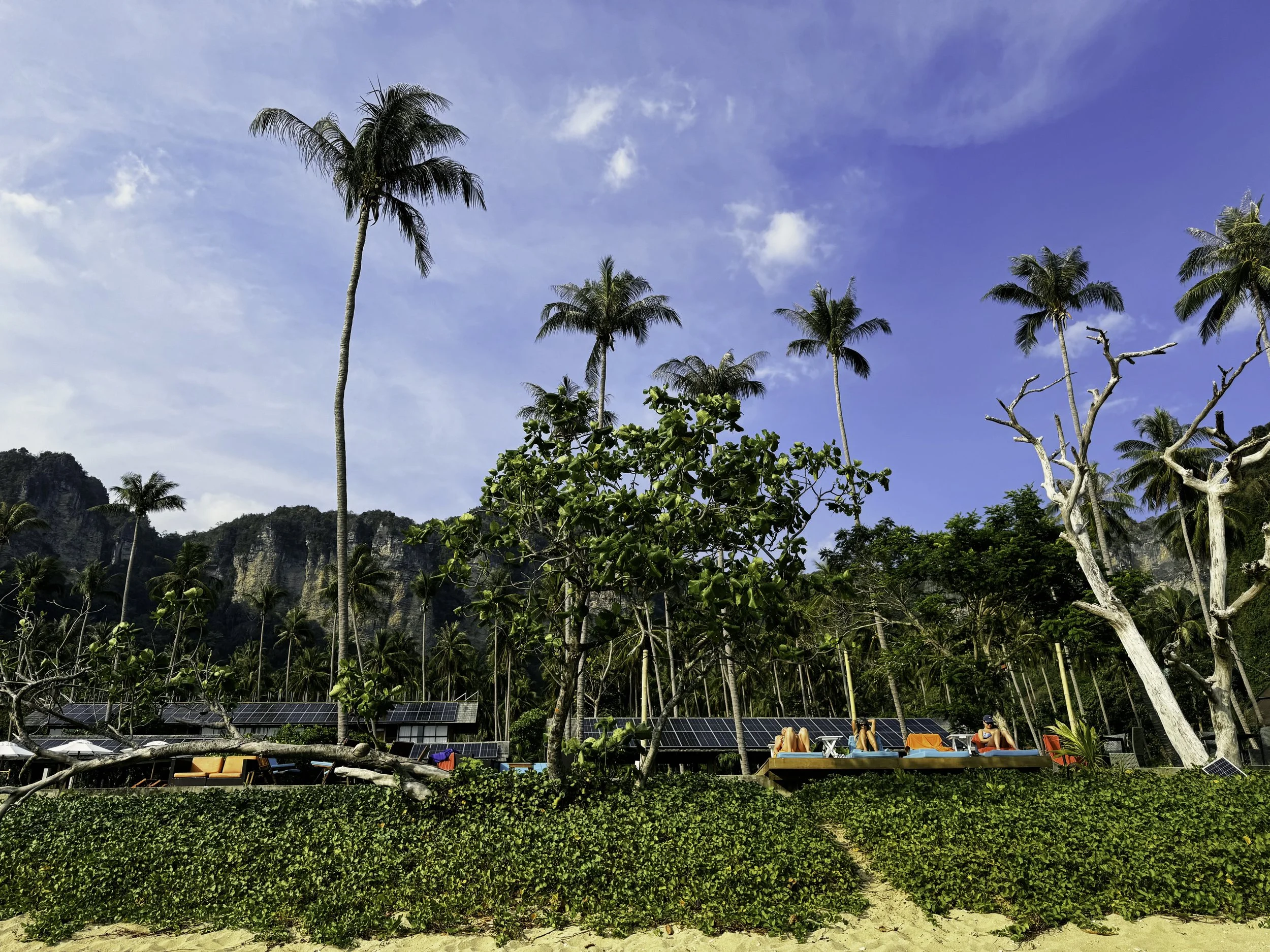Sicht vom Tonsai Beach auf die Liegen unseres Hotels